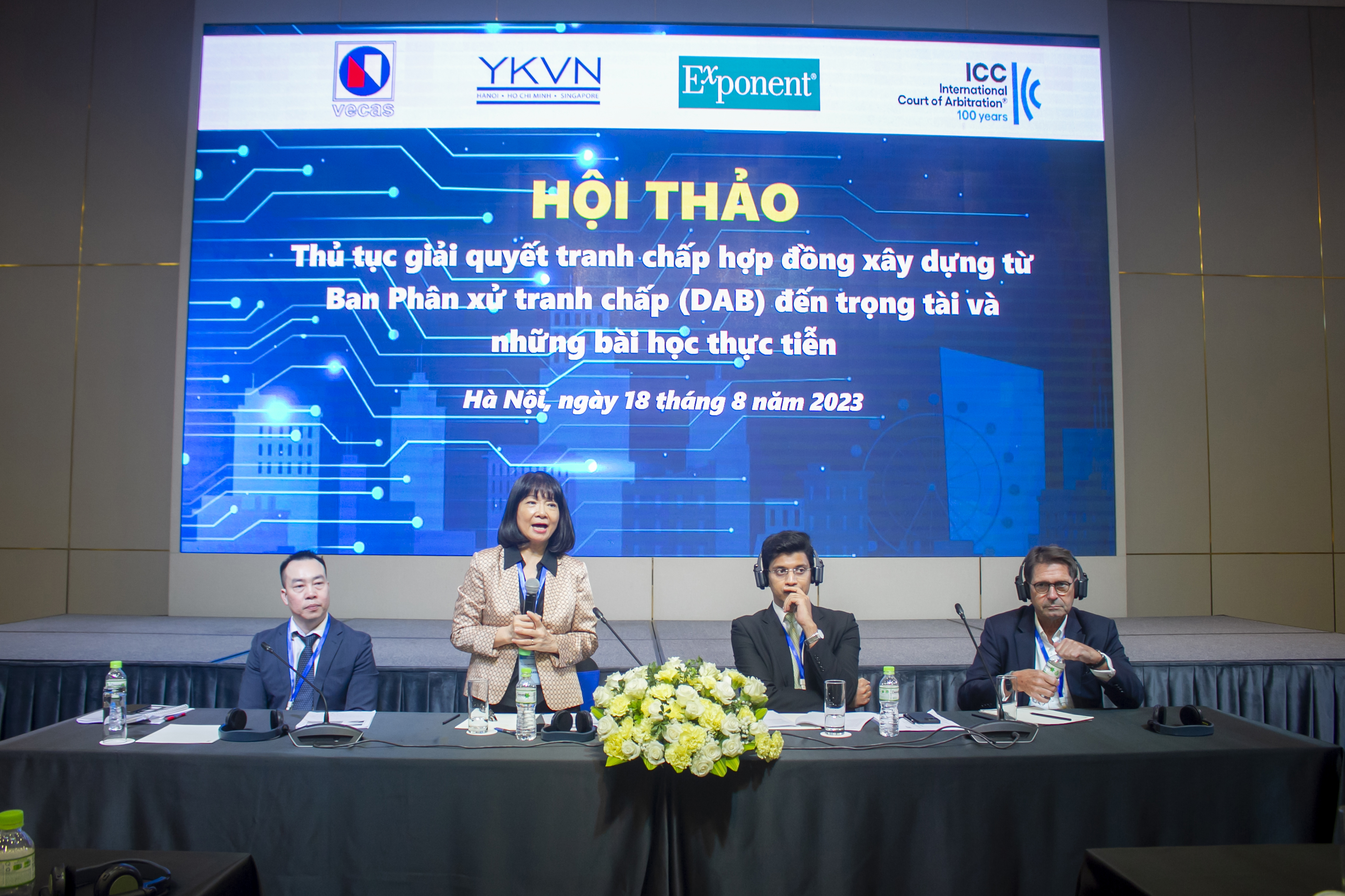 Hội thảo quốc tế với chủ đề “Thủ tục giải quyết tranh chấp hợp đồng xây dựng từ Ban Phân xử tranh chấp (DAB) đến trọng tài và những bài học thực tiễn” tại Hà Nội do Hiệp hội Tư vấn Xây dựng Việt Nam phối hợp với các đối tác quốc tế là Hãng luật YKVN (Singapore), Công ty tư vấn Exponent và Tòa án trọng tài quốc tế ICC (Singapore) tổ chức chiều 18 tháng 8 năm 2023.