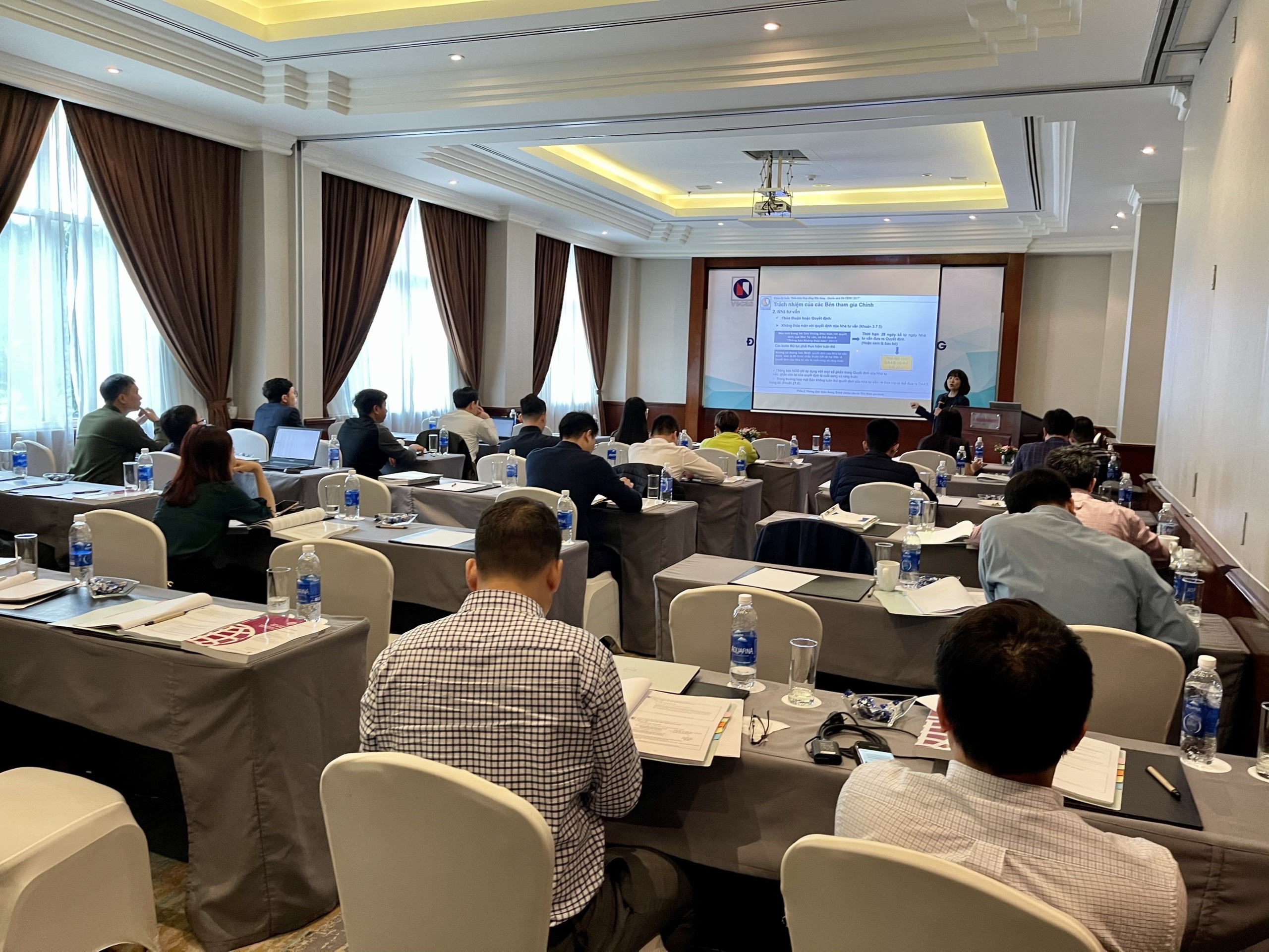 Các nội dung của khóa tập huấn được Chủ tịch Hiệp hội Nguyễn Thị Duyên (giảng viên) trình bày và lưu ý những vấn đề cần quan tâm khi áp dụng mẫu hợp đồng FIDIC để sử dụng phù hợp với các quy định hiện hành của Việt Nam. Khóa tập huấn không những tập trung về cấu trúc tổng quát các mẫu hợp đồng FIDIC, nguyên tắc áp dụng hiệu quả và trọng tâm là các Điều khoản trong Điều kiện Chung của Quyển sách Đỏ 2017, cơ chế phân xử tranh chấp, hướng dẫn của FIDIC khi soạn thảo Điều kiện riêng, áp dụng BIM…các nghiên cứu tình huống thực tế.